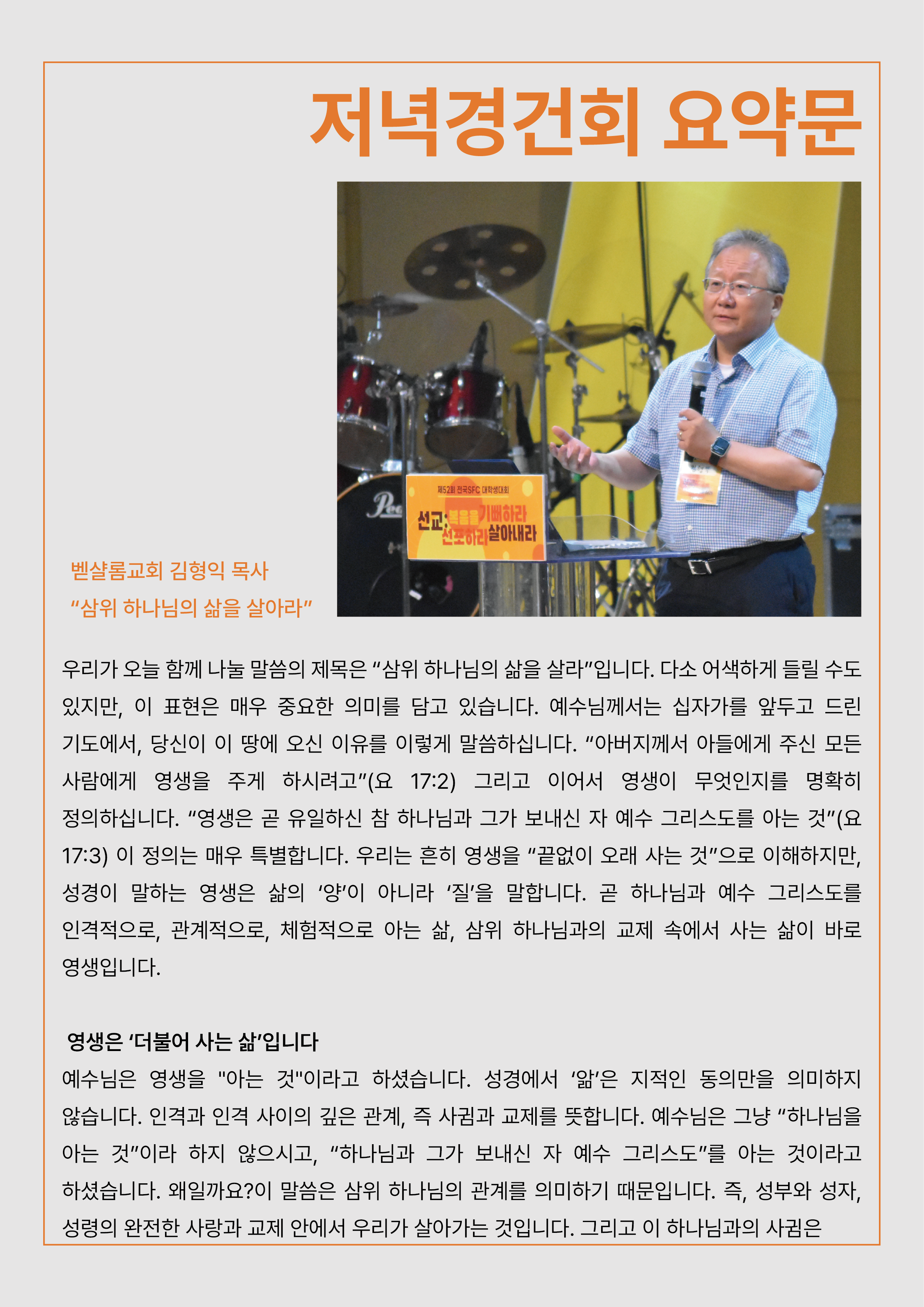 제52회 선교: 복음을 기뻐하라 선포하라 살아내라 3일차